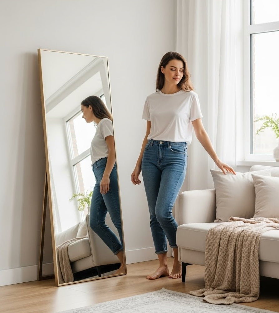 I bought it for the bedroom and I’m absolutely thrilled! The gold frame looks elegant, the mirror stands very stable, and the reflection is perfect. Delivery was super fast.